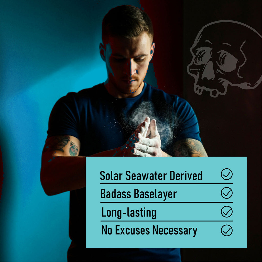 You can bet your life this power is built with purposeful, determined intensity. The 100% pure magnesium carbonate of BONE DUST is conjured from seawater, refined by solar radiation, and tempered by time itself. What remains is a chalk so fine, so pure, it clings to your hands like a white-knuckle grip, banishing sweat, slip, and failure to the depths where they belong.