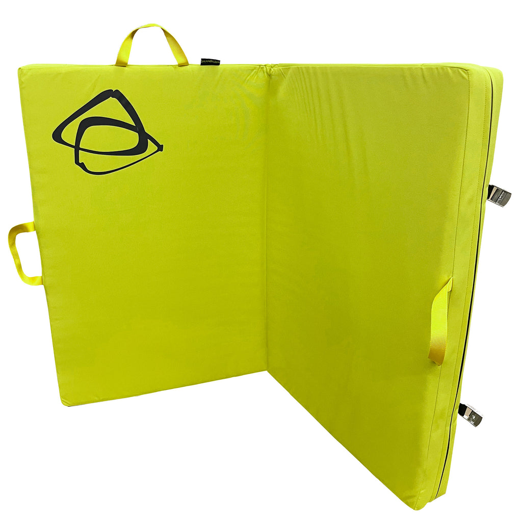 Designed by and for boulderers, The Focus Pad is a well designed with robust metal cam buckle closures and four high visibility yellow carry handles for easy maneuverability.