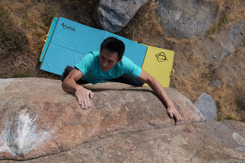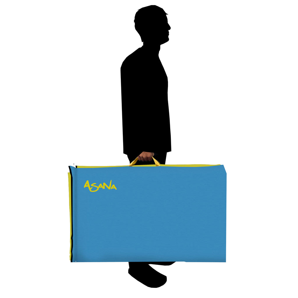 First of all the pad can be, in its most traditional sense, a "pile pad", smartly designed to lay over two or more pads in the stack covering gaps between pads so your feet have less of a chance finding the ground in between two pads. The pad is filled entirely with closed cell foam, so when you fold it up completely, it's a great 3 inch thick sit start pad. And as a bonus feature, you can fold it in half down the long seam and it functions as a stretching mat or as a sleeping pad in your tent.